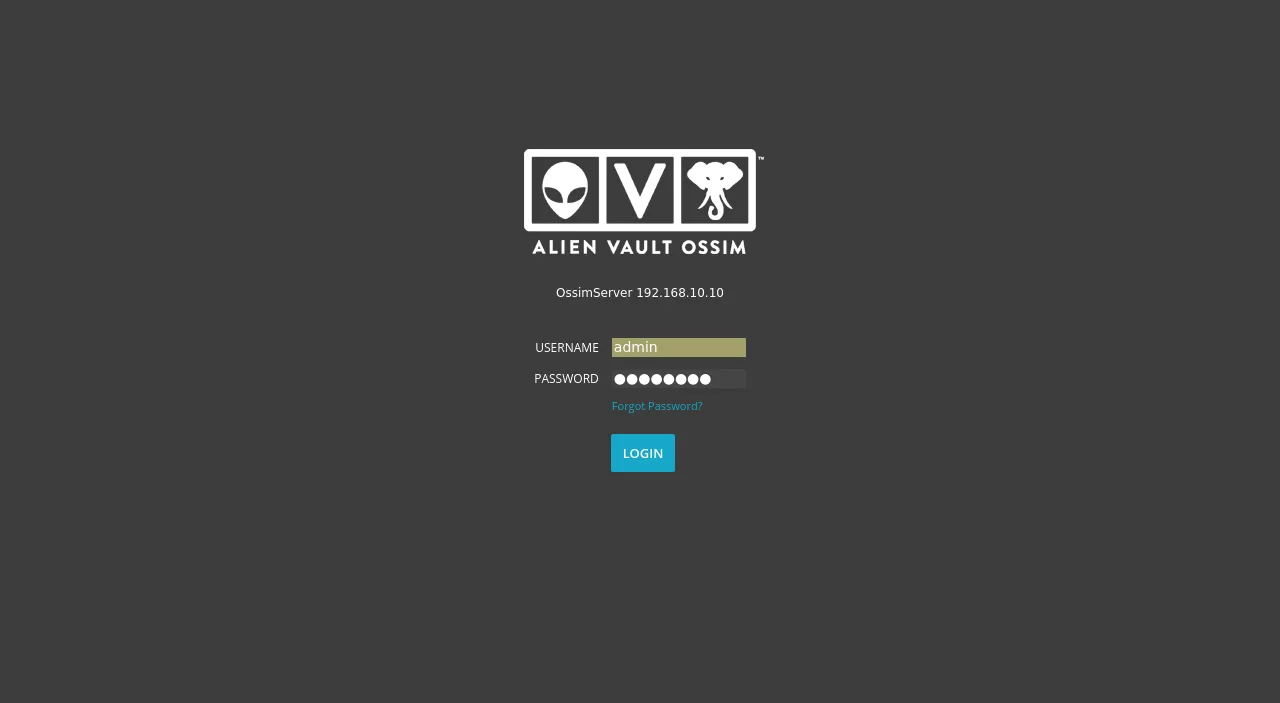 فایرفاکس را باز کنید (در Kali Linux) و آدرس OSSIM Server یعنی 192.168.10.10 را وارد کنید. Advanced و سپس Accept the risk and continue را بزنید تا وارد محیط تحت وب OSSIM شوید.