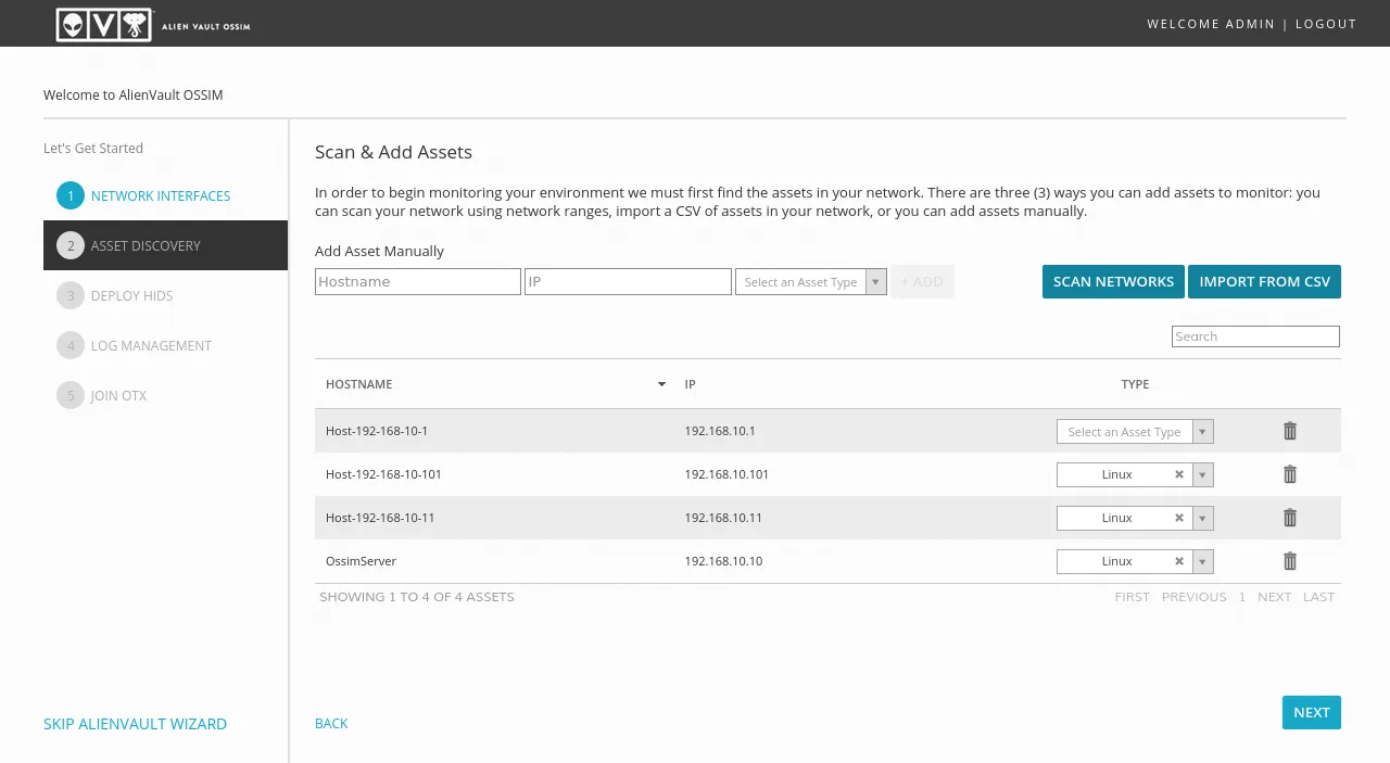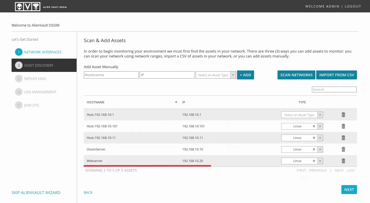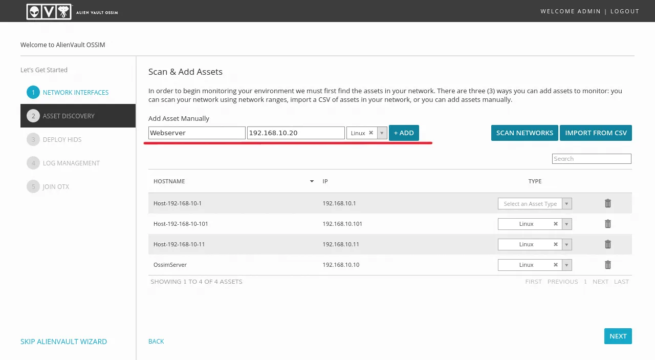 در قسمت اول آدرس اینترفیس مدیریت OSSIM را مشاهده میکنیم که همان 192.168.10.10 است. Next را بزنید.